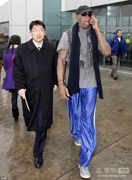 罗德曼由朝鲜官方工作人员陪同。